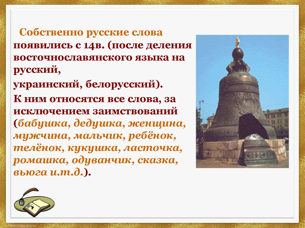 языка, собственно русские слова,