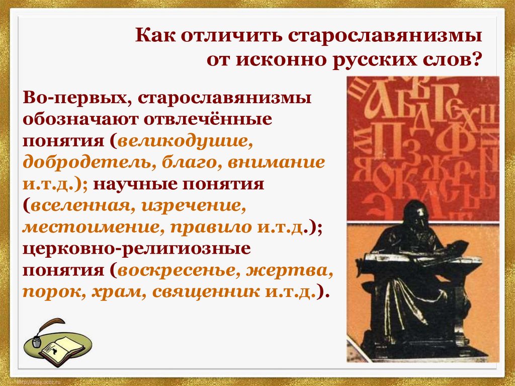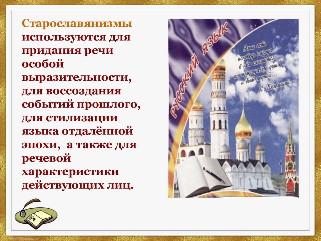 использование старославянизмов.