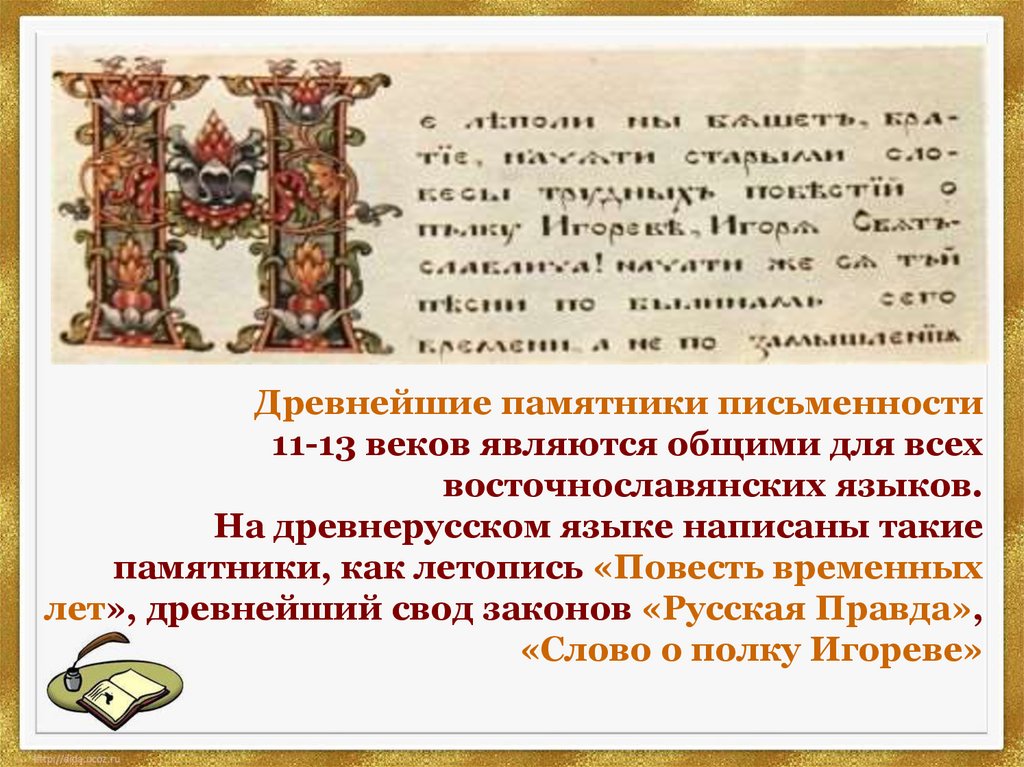 Древнейшие памятники письменности11-13 веков являются общими для всех