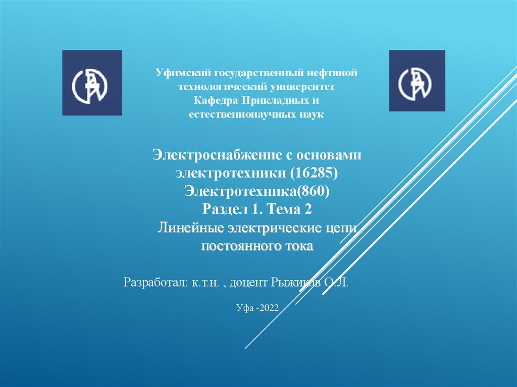 Линейные электрические цепи постоянного тока. Раздел 1. Тема 2