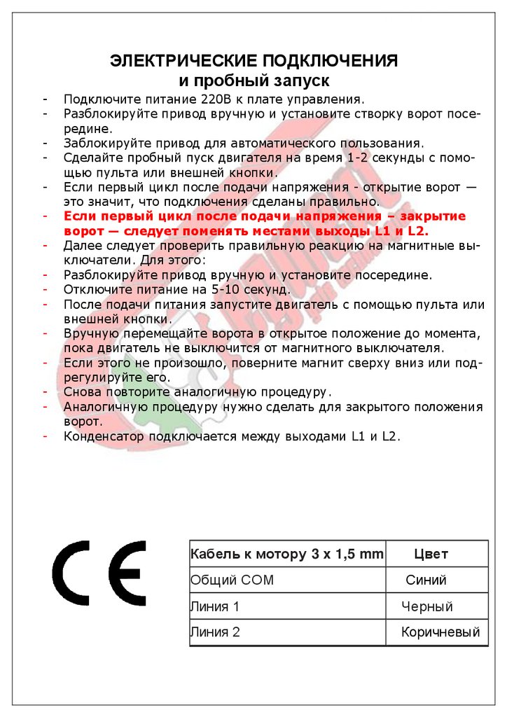 ЭЛЕКТРИЧЕСКИЕ ПОДКЛЮЧЕНИЯи пробный запуск