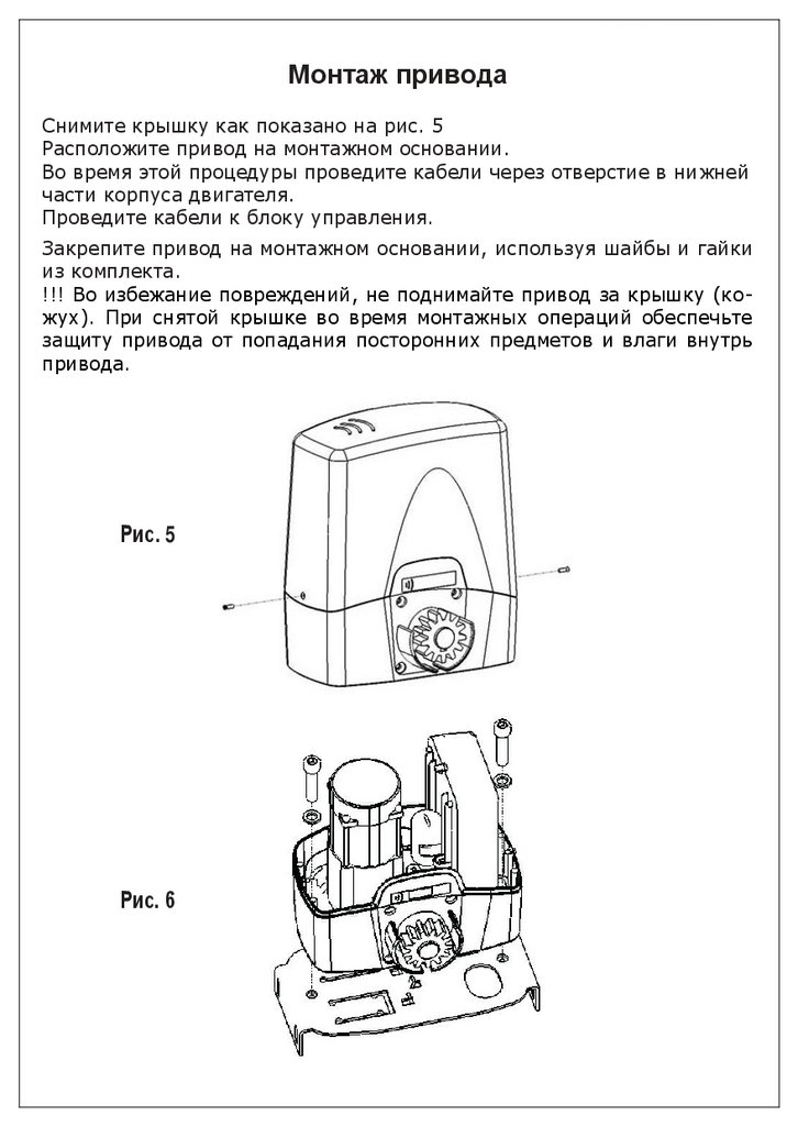 Монтаж приводаСнимите крышку как показано на рис. 5