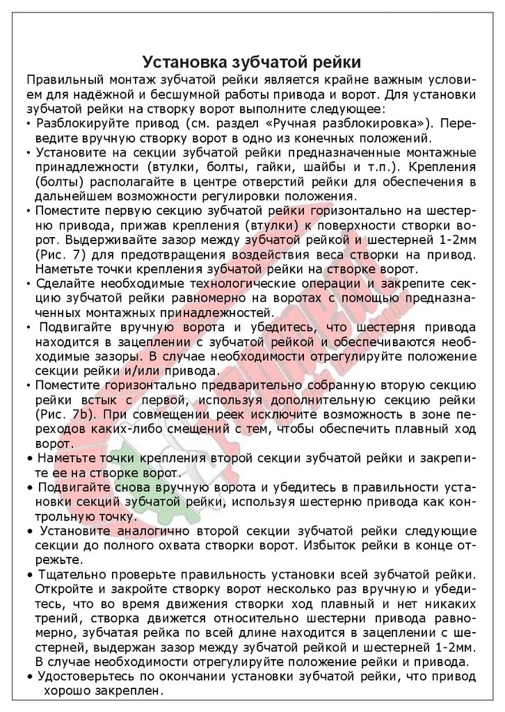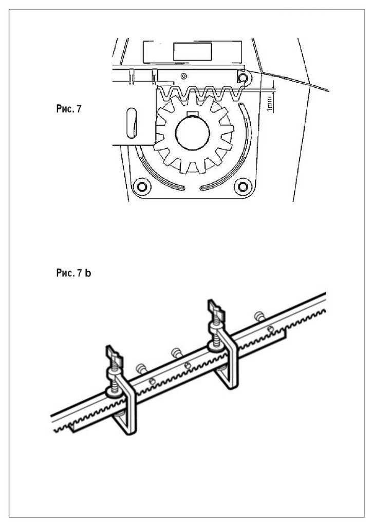 • Тщательно проверьте правильность установки всей зубчатой рейки.