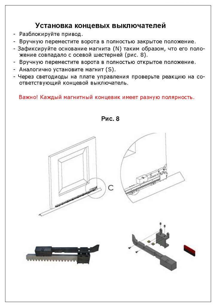 Важно! Каждый магнитный концевик имеет разную полярность.