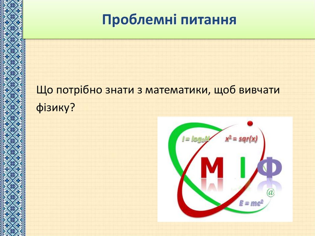 Проблемні питанняЩо потрібно знати з математики, щоб вивчати