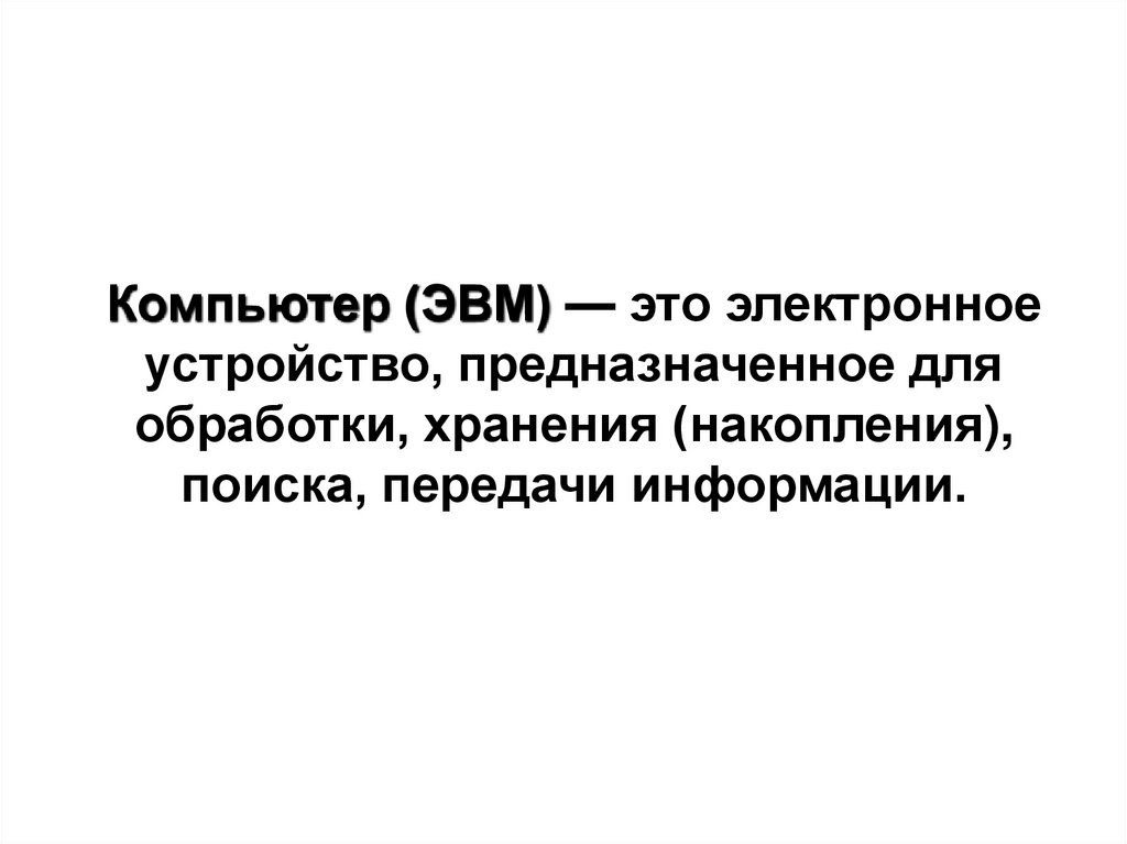 Компьютер (ЭВМ) — это электронноеустройство, предназначенное для