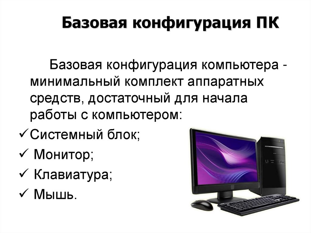 Базовая конфигурация ПКБазовая конфигурация компьютера минимальный комплект аппаратных