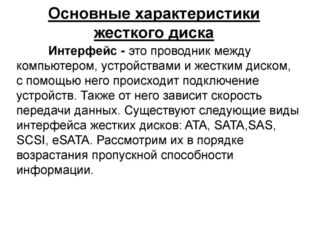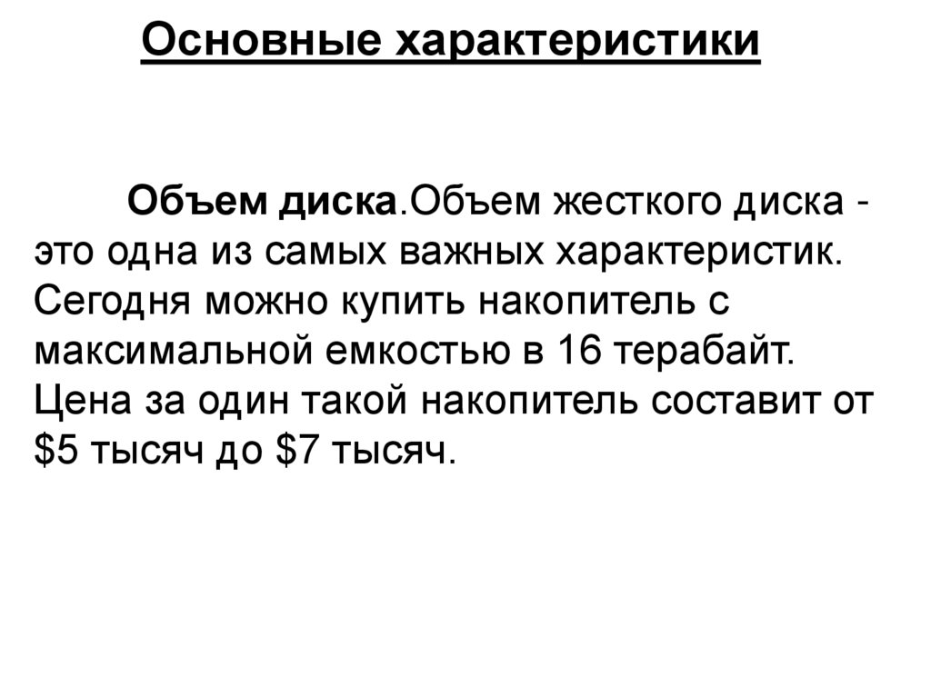 Основные характеристикиОбъем диска.Объем жесткого диска это одна из самых важных характеристик.