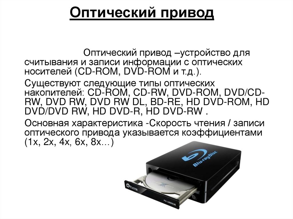 накопителей: CD-ROM, CD-RW, DVD-ROM, DVD/CDRW, DVD RW, DVD RW DL, BD-RE, HD DVD-ROM, HD