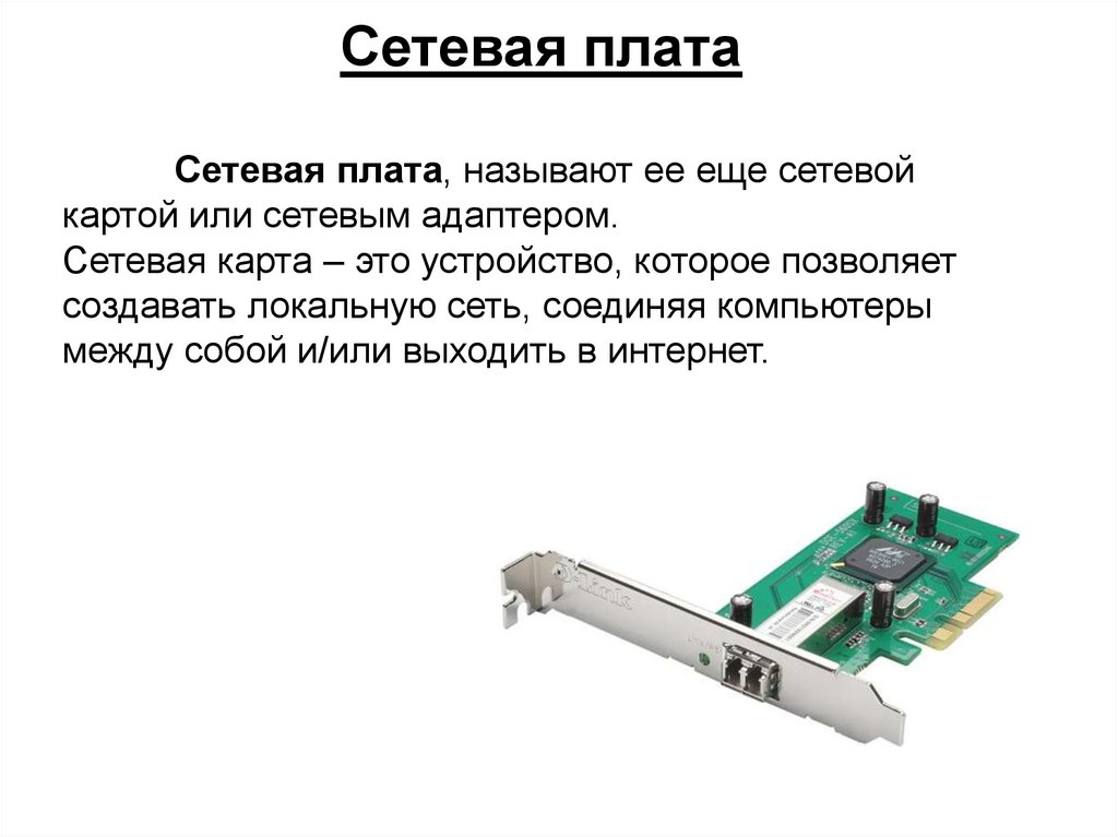 Сетевая платаСетевая плата, называют ее еще сетевой