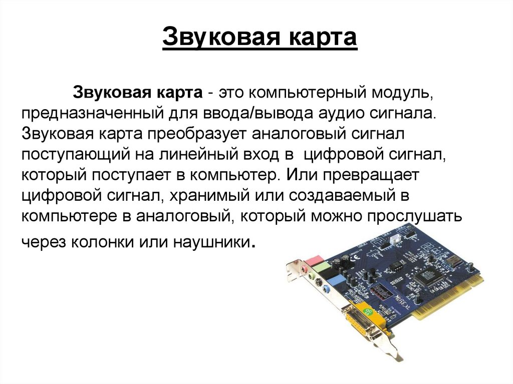 Звуковая картаЗвуковая карта - это компьютерный модуль,
