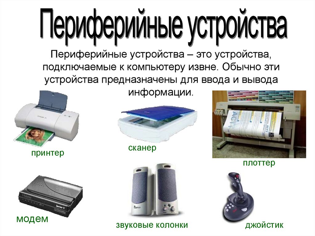 Периферийные устройства – это устройства,подключаемые к компьютеру извне. Обычно эти