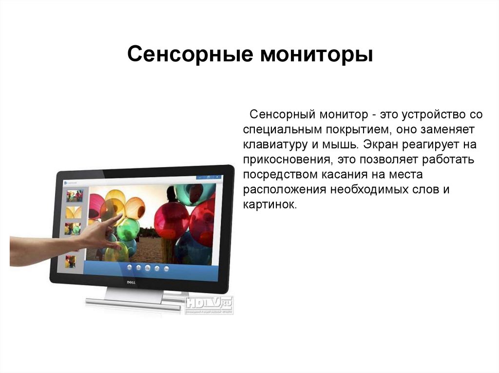 Сенсорные мониторыСенсорный монитор - это устройство со
