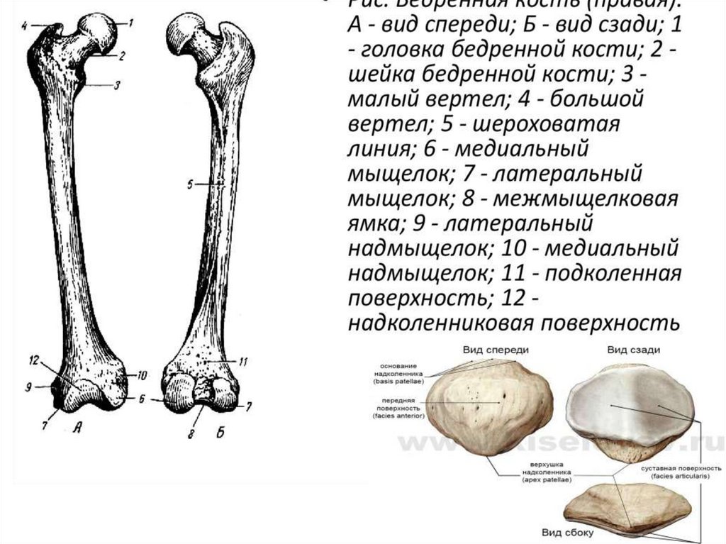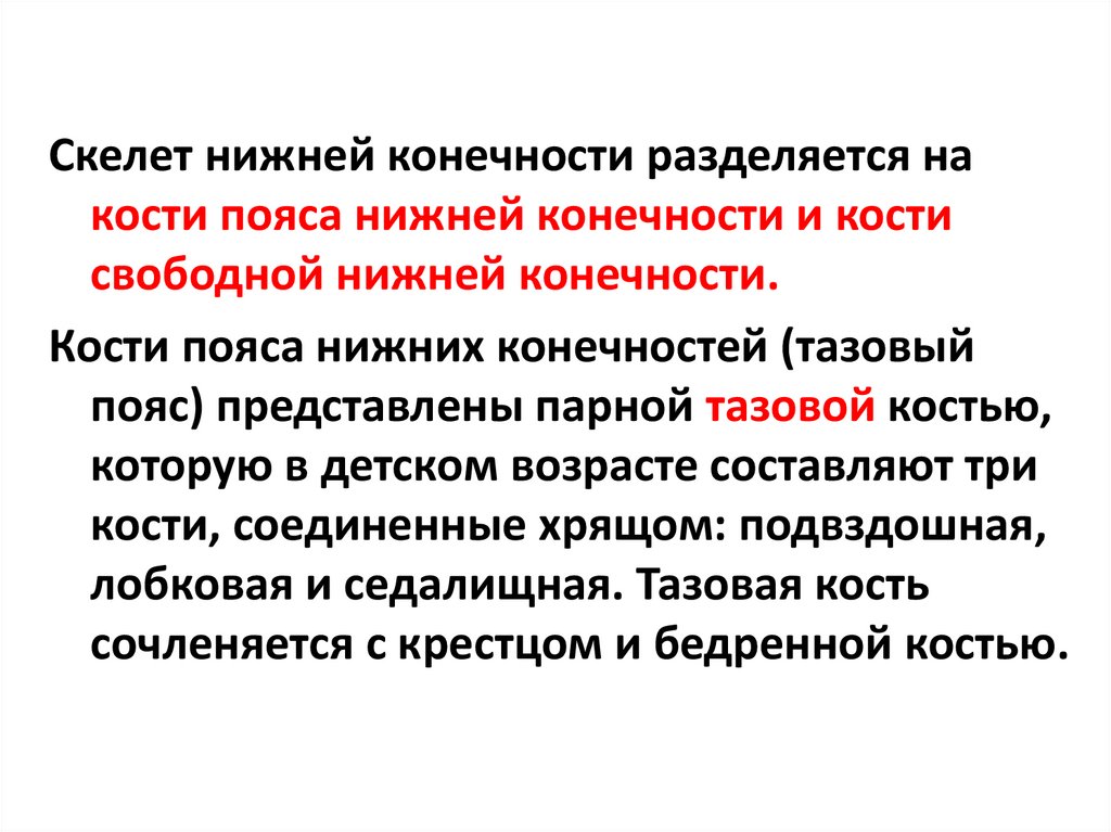 Скелет нижней конечности разделяется накости пояса нижней конечности и кости