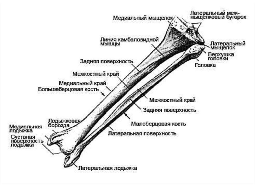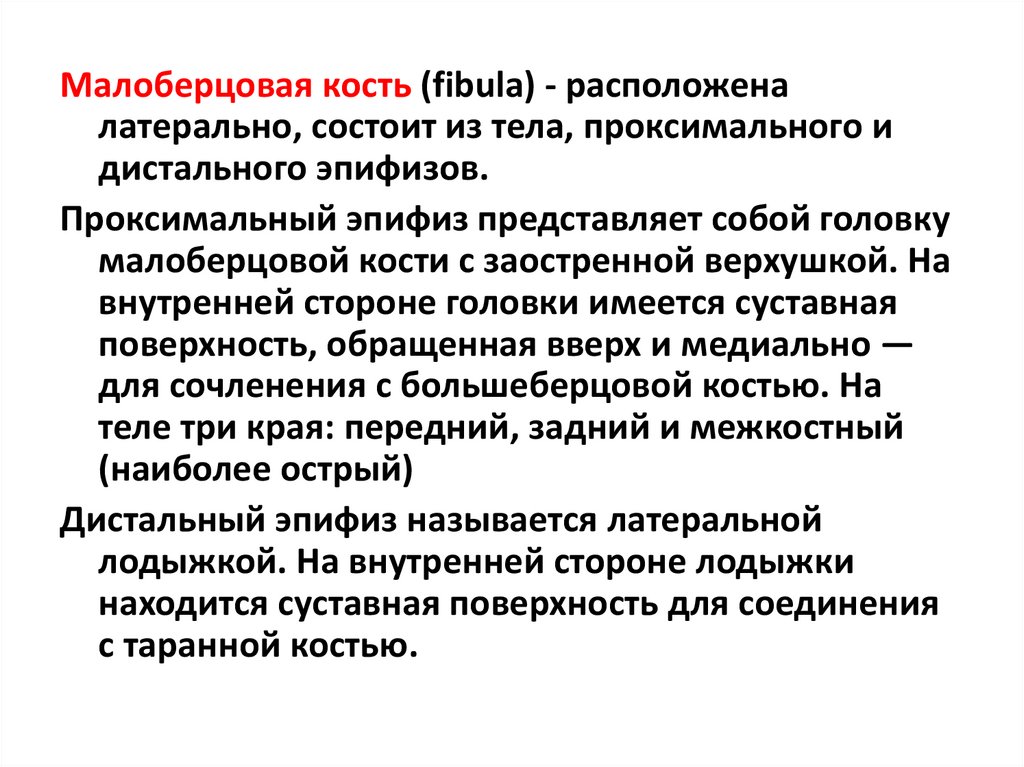 Малоберцовая кость (fibula) - расположеналатерально, состоит из тела, проксимального и