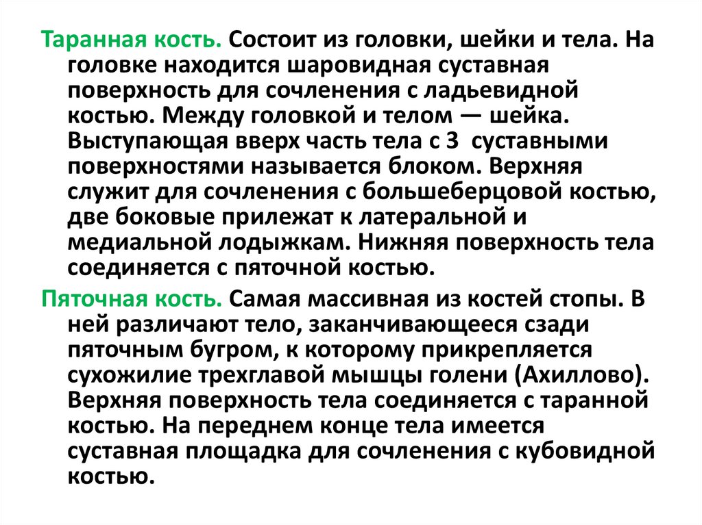 Таранная кость. Состоит из головки, шейки и тела. Наголовке находится шаровидная суставная