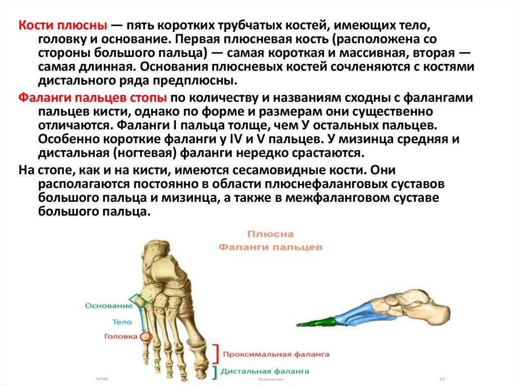 Кости плюсны — пять коротких трубчатых костей, имеющих тело,головку и основание. Первая плюсневая кость (расположена со