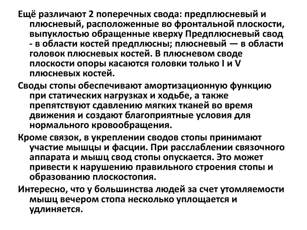 Ещё различают 2 поперечных свода: предплюсневый иплюсневый, расположенные во фронтальной плоскости,