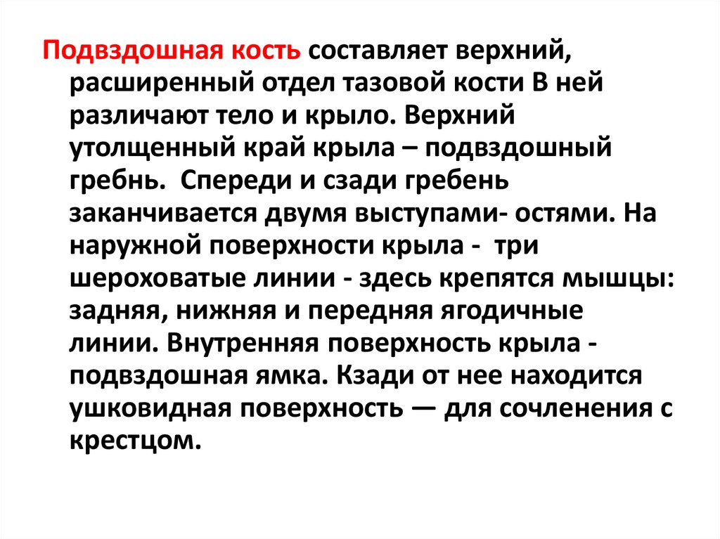 Подвздошная кость составляет верхний,расширенный отдел тазовой кости В ней