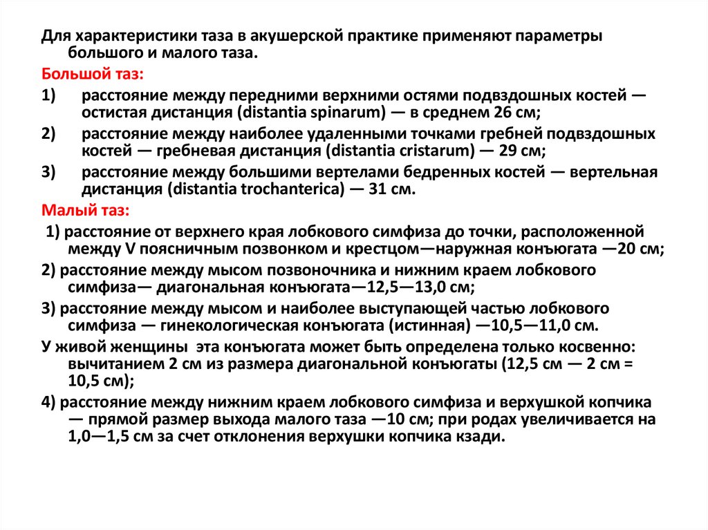 Для характеристики таза в акушерской практике применяют параметрыбольшого и малого таза.