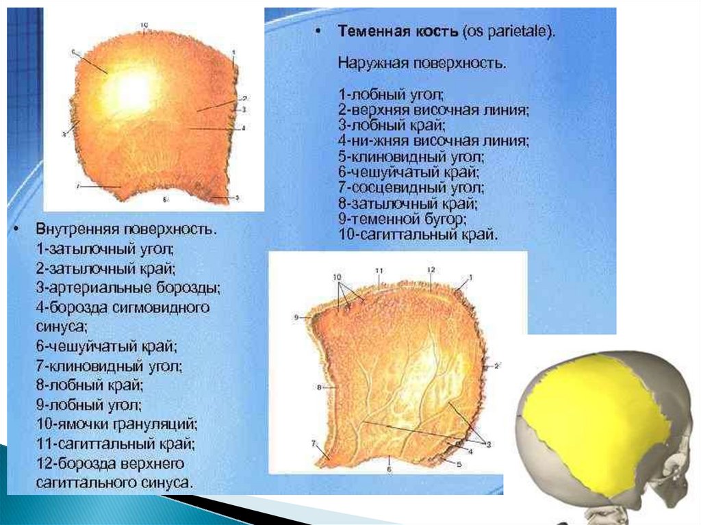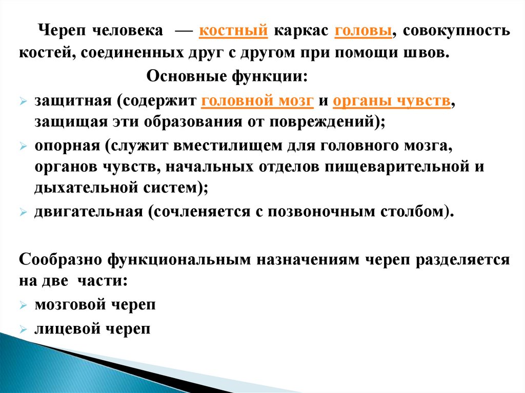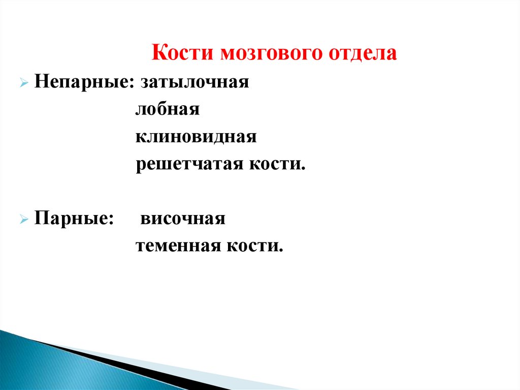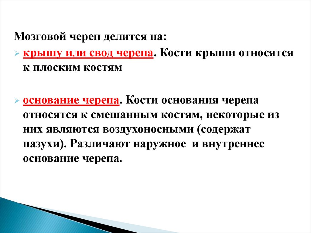 Мозговой череп делится на:крышу или свод черепа. Кости крыши относятся