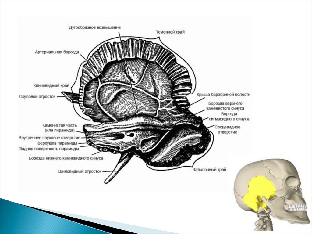 Соответственно, шилососцевидное отверстие височной кости неглубокое.
