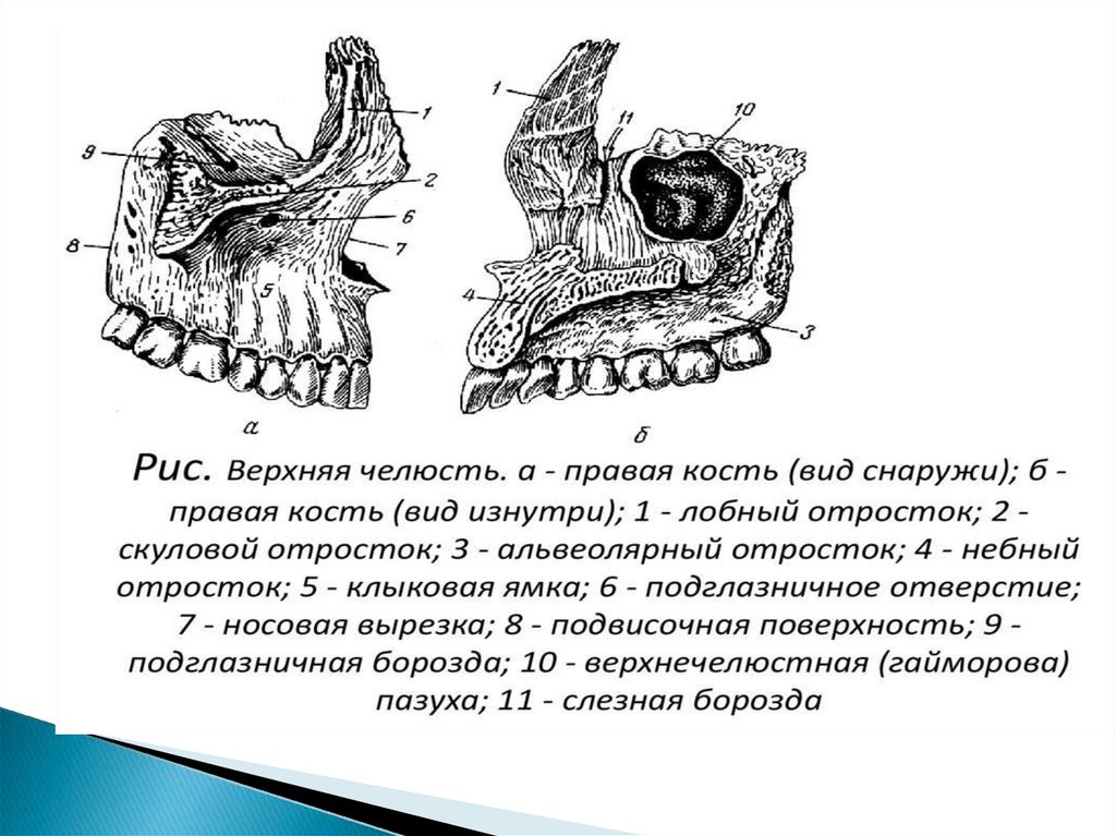 отростком, содержащим развивающиеся зубы. Верхняя челюсть