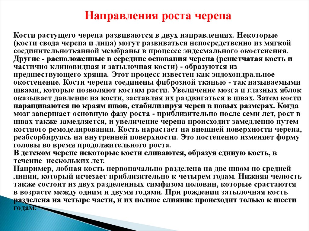 Направления роста черепаКости растущего черепа развиваются в двух направлениях. Некоторые