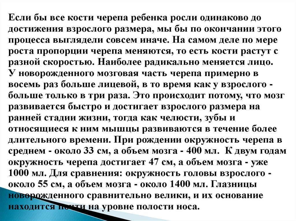Если бы все кости черепа ребенка росли одинаково додостижения взрослого размера, мы бы по окончании этого