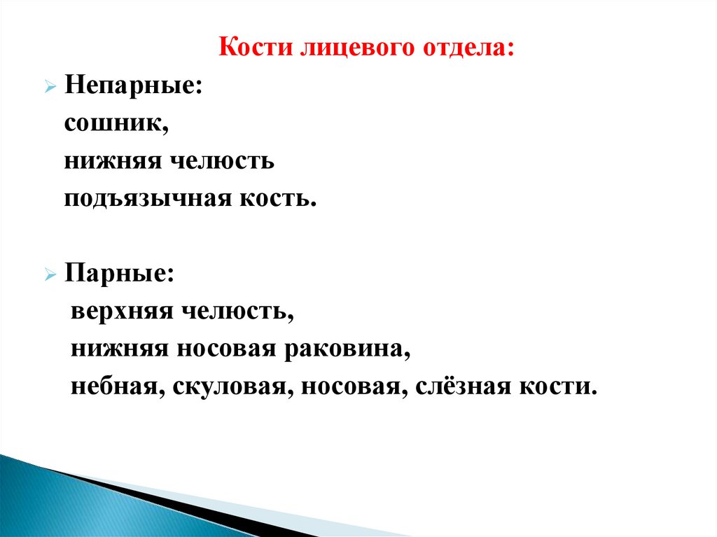 Другие - расположенные в середине основания черепа (решетчатая кость и