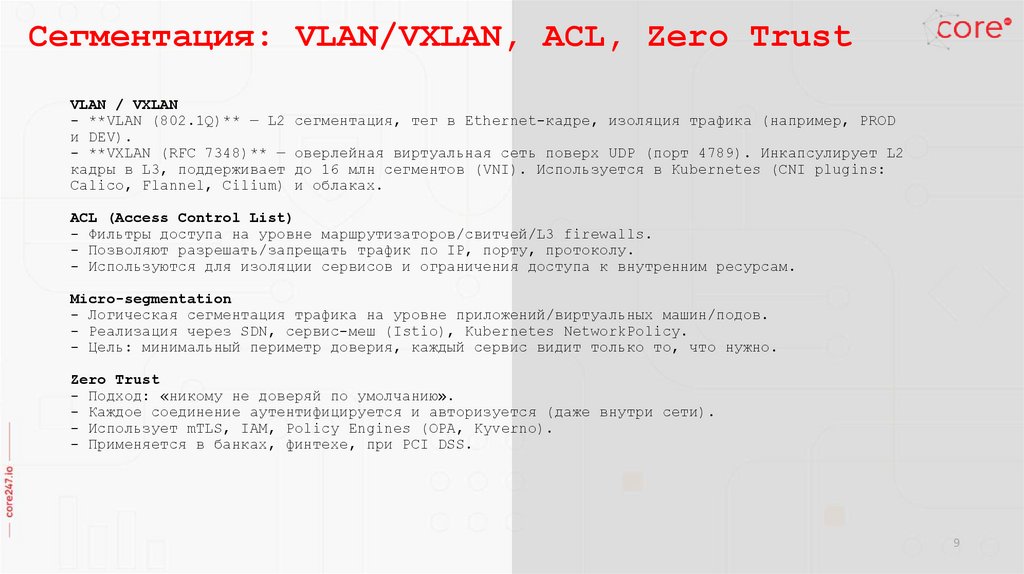 Сегментация: VLAN/VXLAN, ACL, Zero TrustVLAN / VXLAN