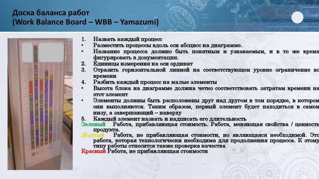Доска баланса работ(Work Balance Board – WBB – Yamazumi)