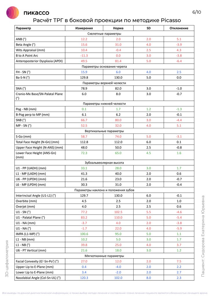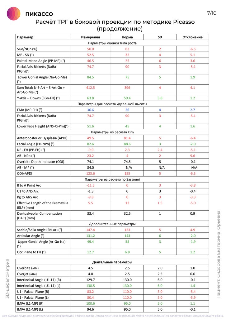 Расчет ТРГ в боковой проекции по методике Picasso________6-7