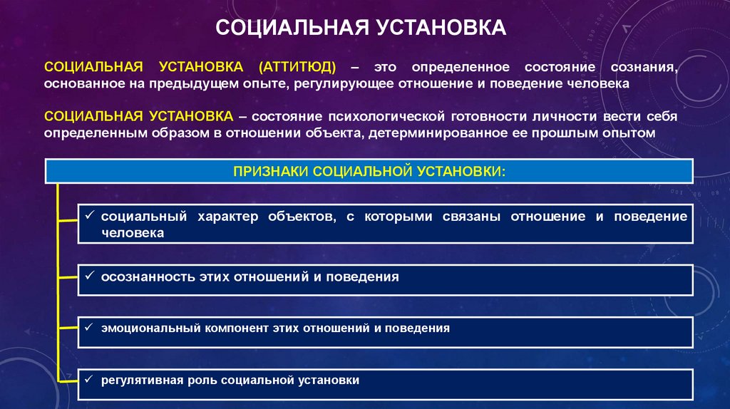 ПРИЗНАКИ СОЦИАЛЬНОЙ УСТАНОВКИ: