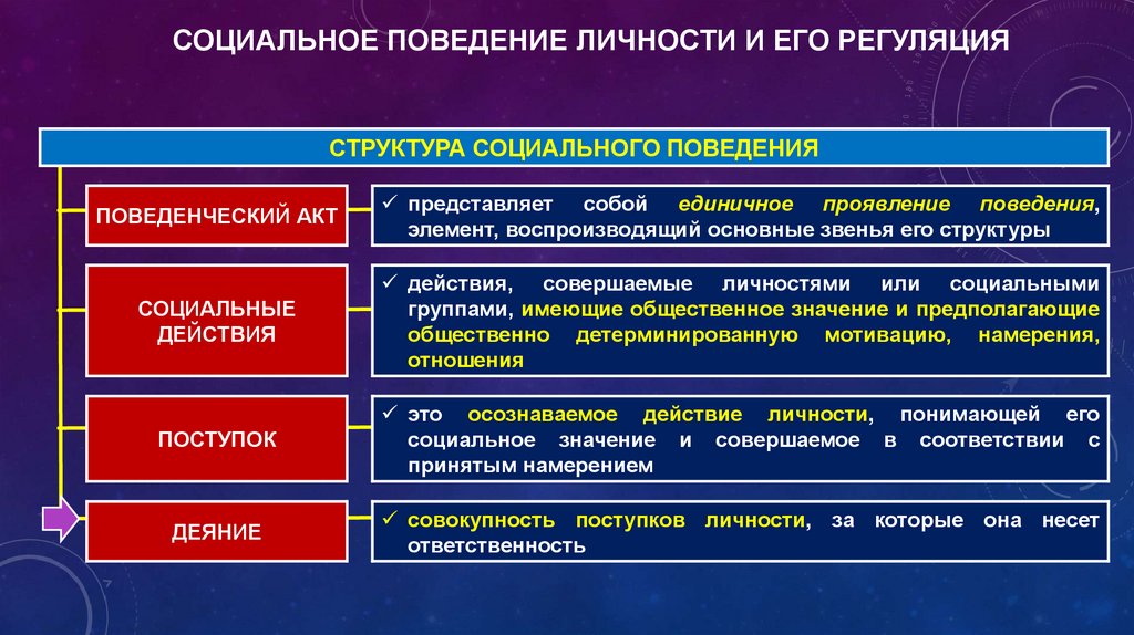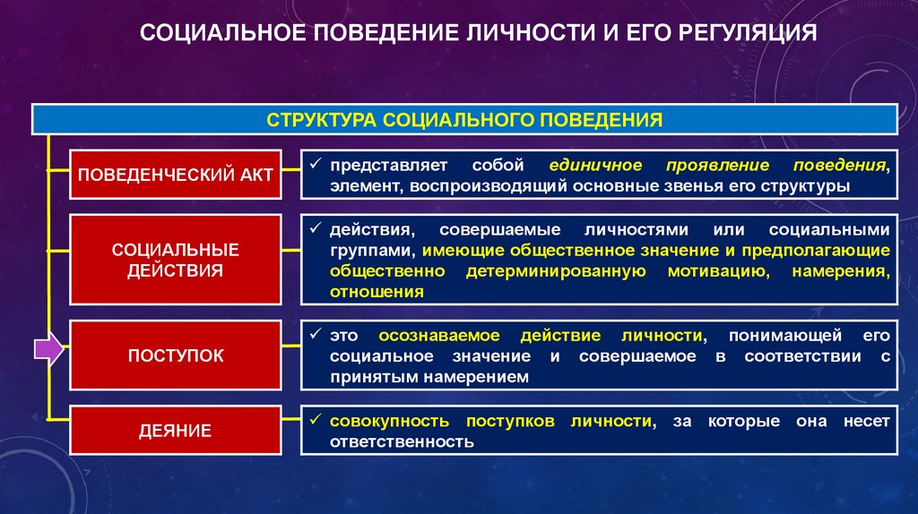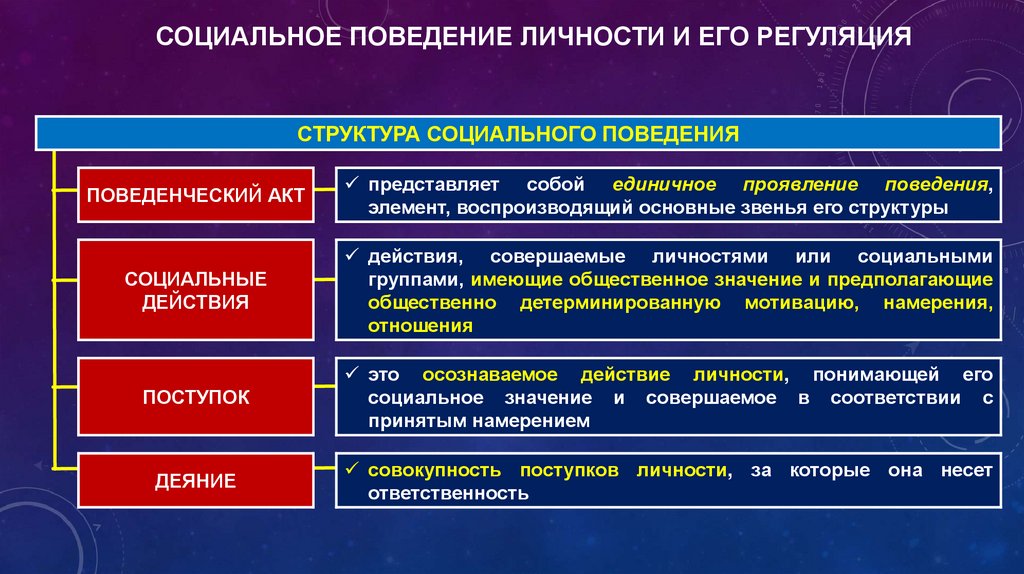 СОЦИАЛЬНОЕ ПОВЕДЕНИЕ ЛИЧНОСТИ И ЕГО РЕГУЛЯЦИЯСОДЕРЖАНИЕ ДЕЙСТВИЯ МЕХАНИЗМОВ