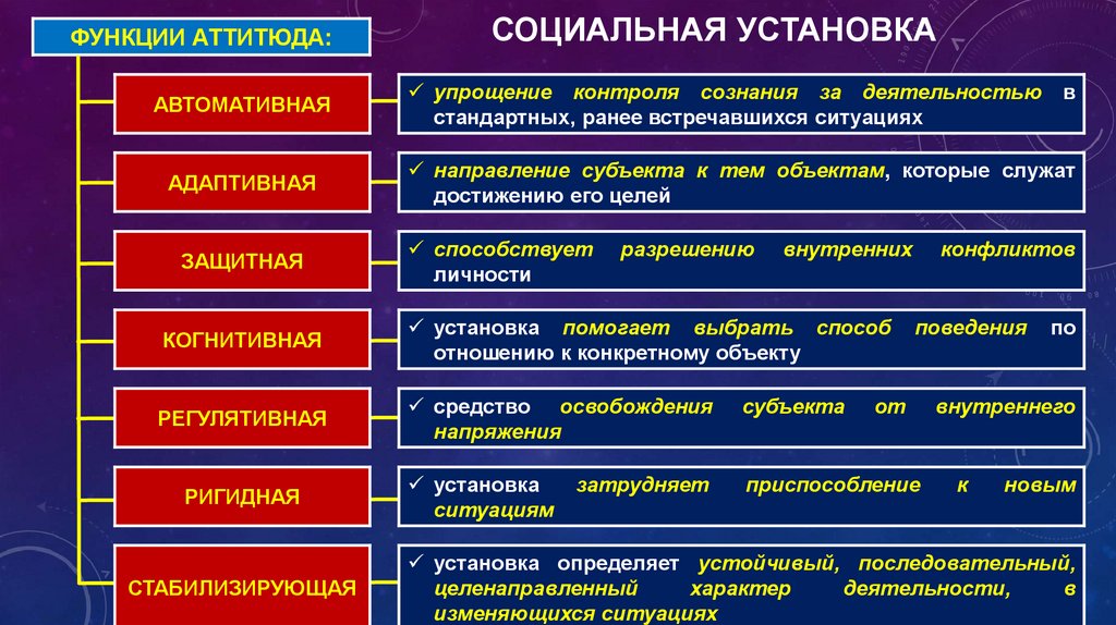 ФУНКЦИИ АТТИТЮДА:СОЦИАЛЬНАЯ УСТАНОВКА