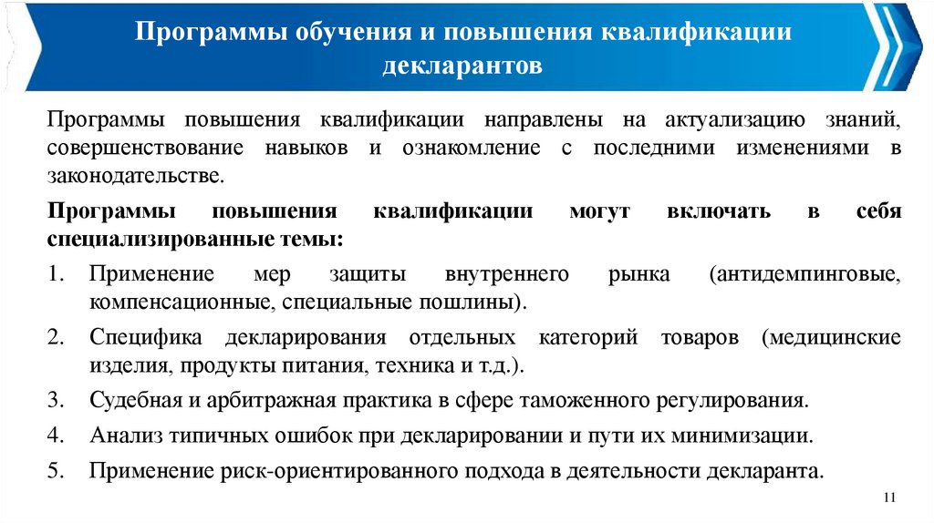 важно обратить внимание на подготовку и повышение квалификации декларантов,