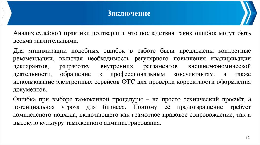 ЗаключениеОсновные ошибки при выборе таможенной процедуры