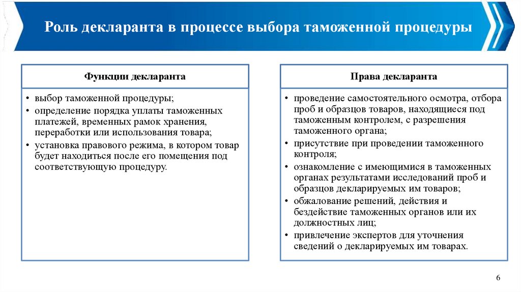 • охарактеризовать роль декларанта в процессе выбора таможенной процедуры;