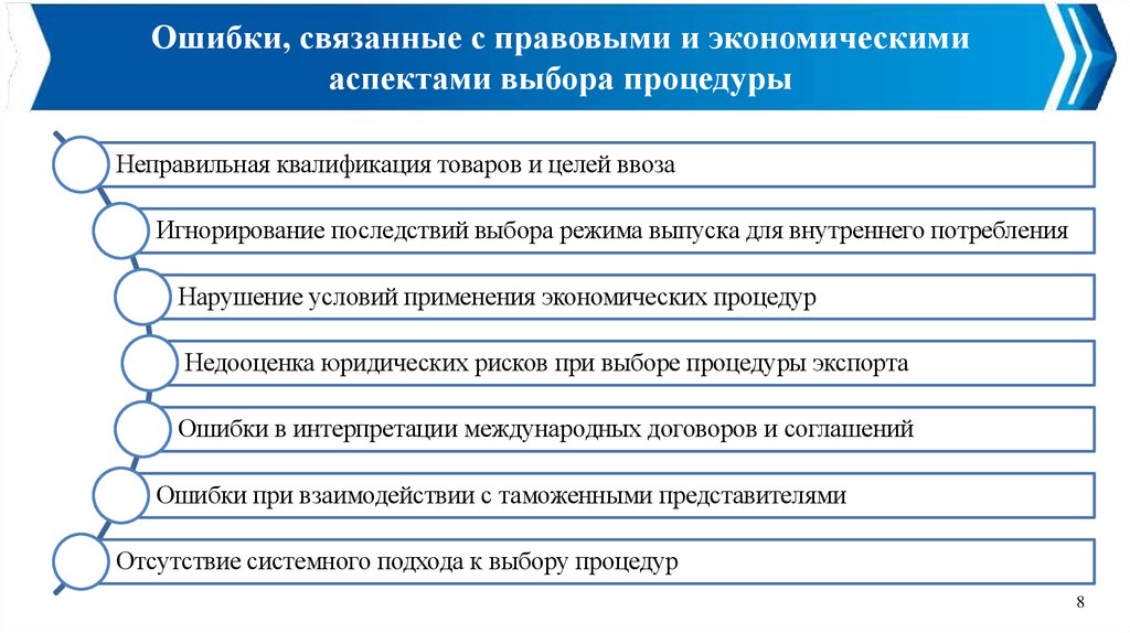 • рассмотреть ошибки, связанные с правовыми и экономическими аспектами