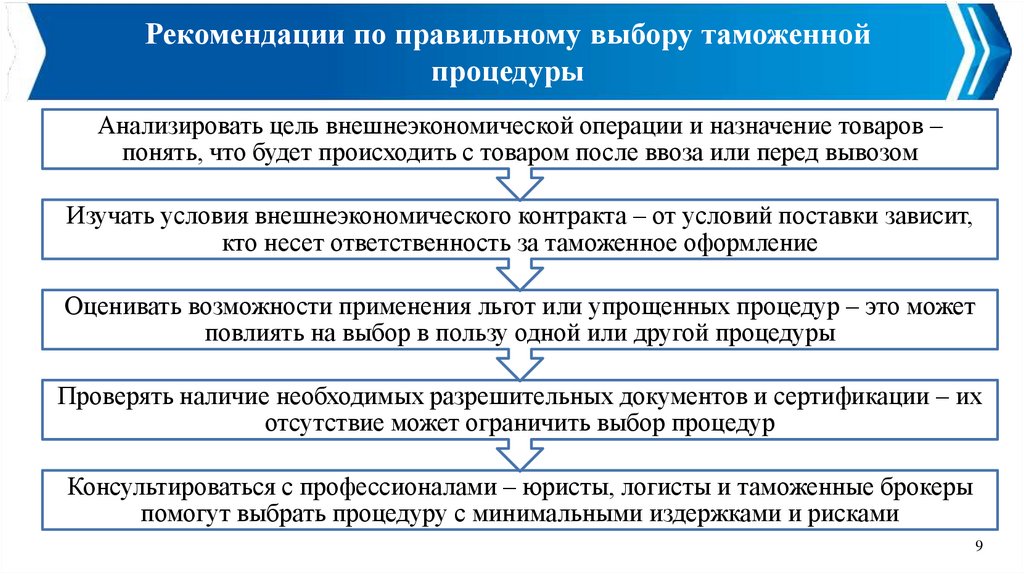 • привести рекомендации по правильному выбору таможенной процедуры;
