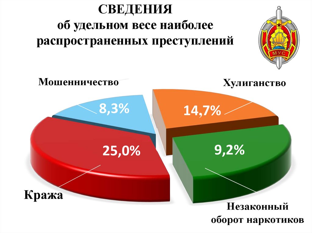 Сведения об удельном весе наиболее распространенных преступлений