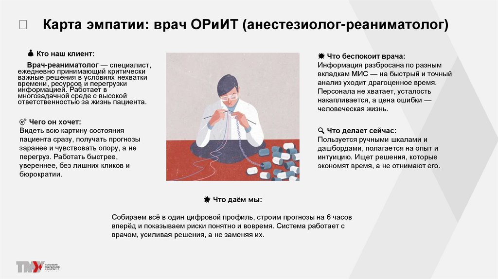 Современная система реанимации и интенсивной терапии сталкивается с серьёзными проблемами:дефицит медицинского персонала, неэффективное использование данных пациентов и отсутствие технологий для раннего
