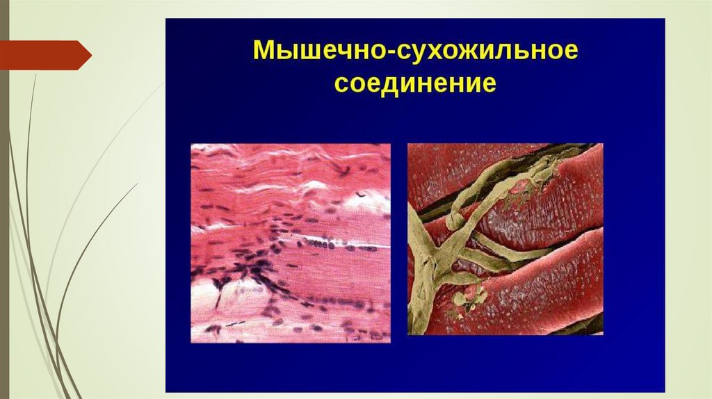 Переход волокон в сухожилия, сарколемма разволокняется пальцеобразно