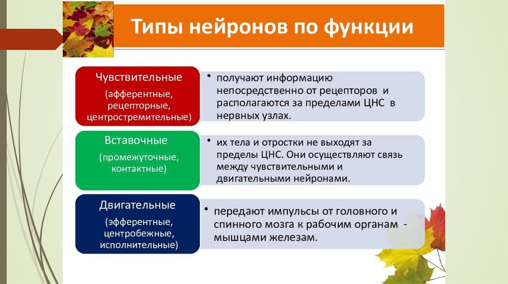 Нейроны эфферентные( двигательные), вынесены за пределы ЦНС и