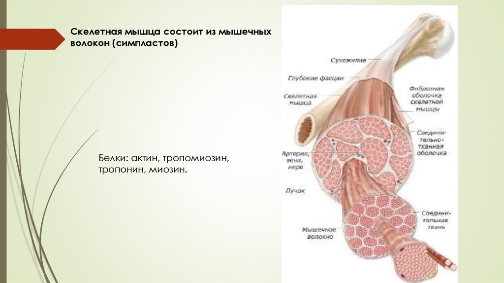 Скелетная мышца состоит из мышечныхволокон (симпластов)