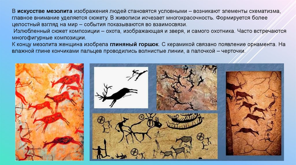 В эпоху Мадлен появляются изображение животных не только в статичных позах, но и в движении. В