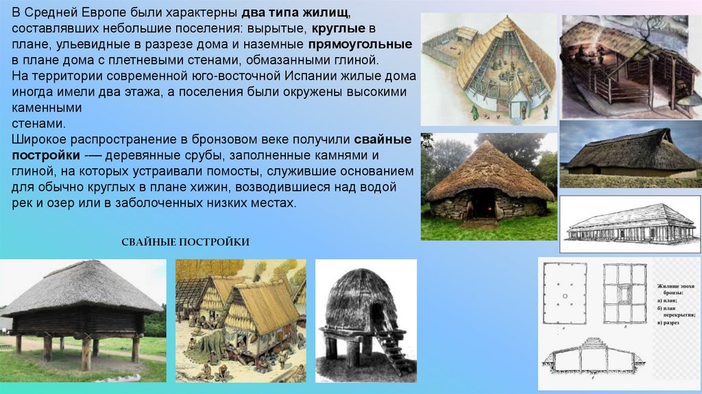 стропила, врытые в землю. Меньшие дома (7 х 8 м) имели такую же конструкцию и иногда делались из