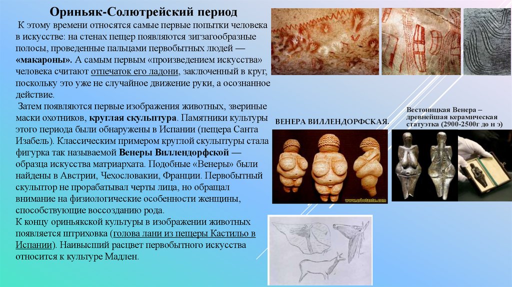 Ориньяк-Солютрейский периодК этому времени относятся самые первые попытки человека