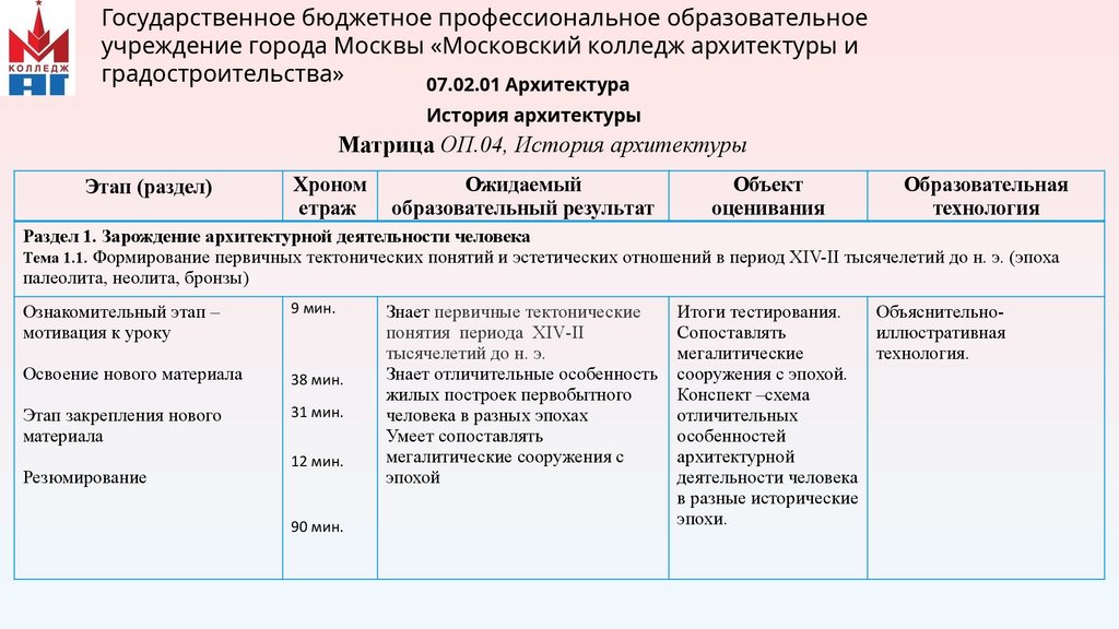 Государственное бюджетное профессиональное образовательноеучреждение города Москвы «Московский колледж архитектуры и